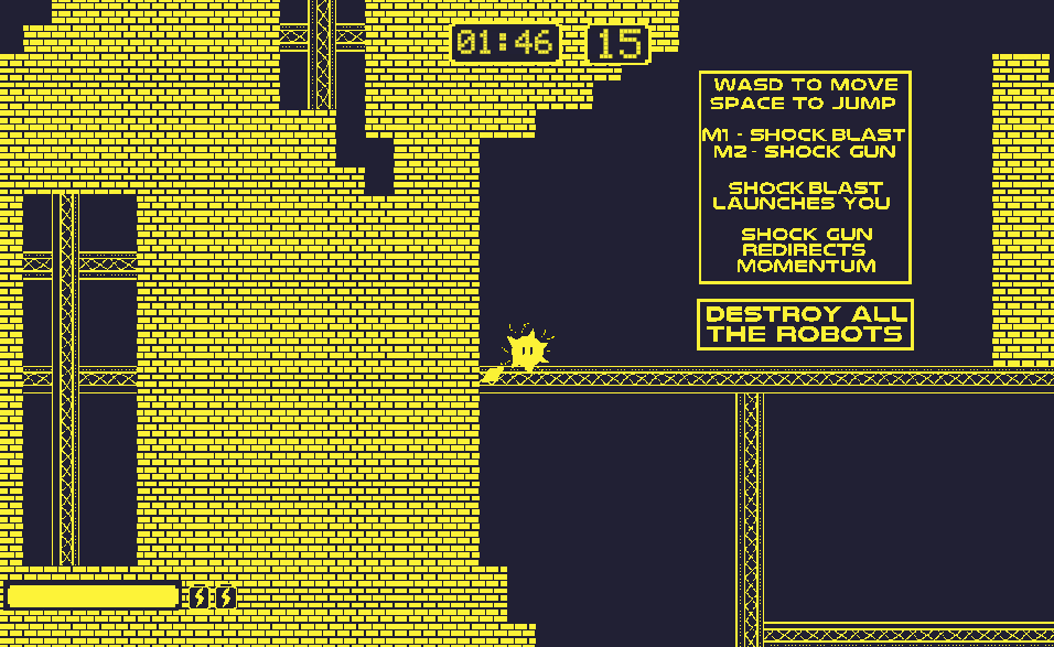 Its 2048 and AI is about to take the last human job, and it's up to one sentient ball of electricity to stop it. GREEDY CORP has teamed up with SLOP CO INC and started their new construction company of entirely AI robots, built with “slopGPT 72.0”. Their new “✧Blueprint✧” model is able to build, hammer, weld and perform other tasks at a slightly above average pace, which means if they can build something successfully, all human workers will be replaced. SLOP CO INC’s septillionaire CEO has poured a ton of money into the project, and also increased ram prices by another 4000% in doing so. As a sentient ball of energy whose origins remain unknown due to time constraints, it’s up to you to destroy GREEDY-SLOP construction and save humanity. (also stopping the 12th economy collapse of 2048.) You must do it in 1:50 though or you will cease to exist.